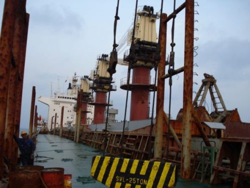 In anchorage it was checked and over checked and the cranes were the same- poor synchronizing of grabbing and hoisting winches. It was installed an empty grab and tried. But because the sea conditions we couldn’t do much. The grab was swinging left and right and it was very dangerous to test any cranes.