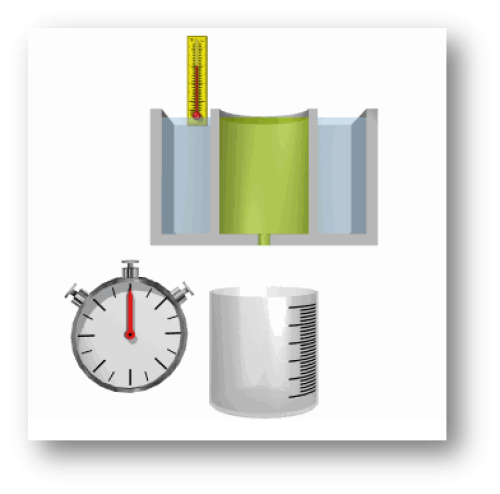 - – to flow through an orifice and fill a small wide cup/container.